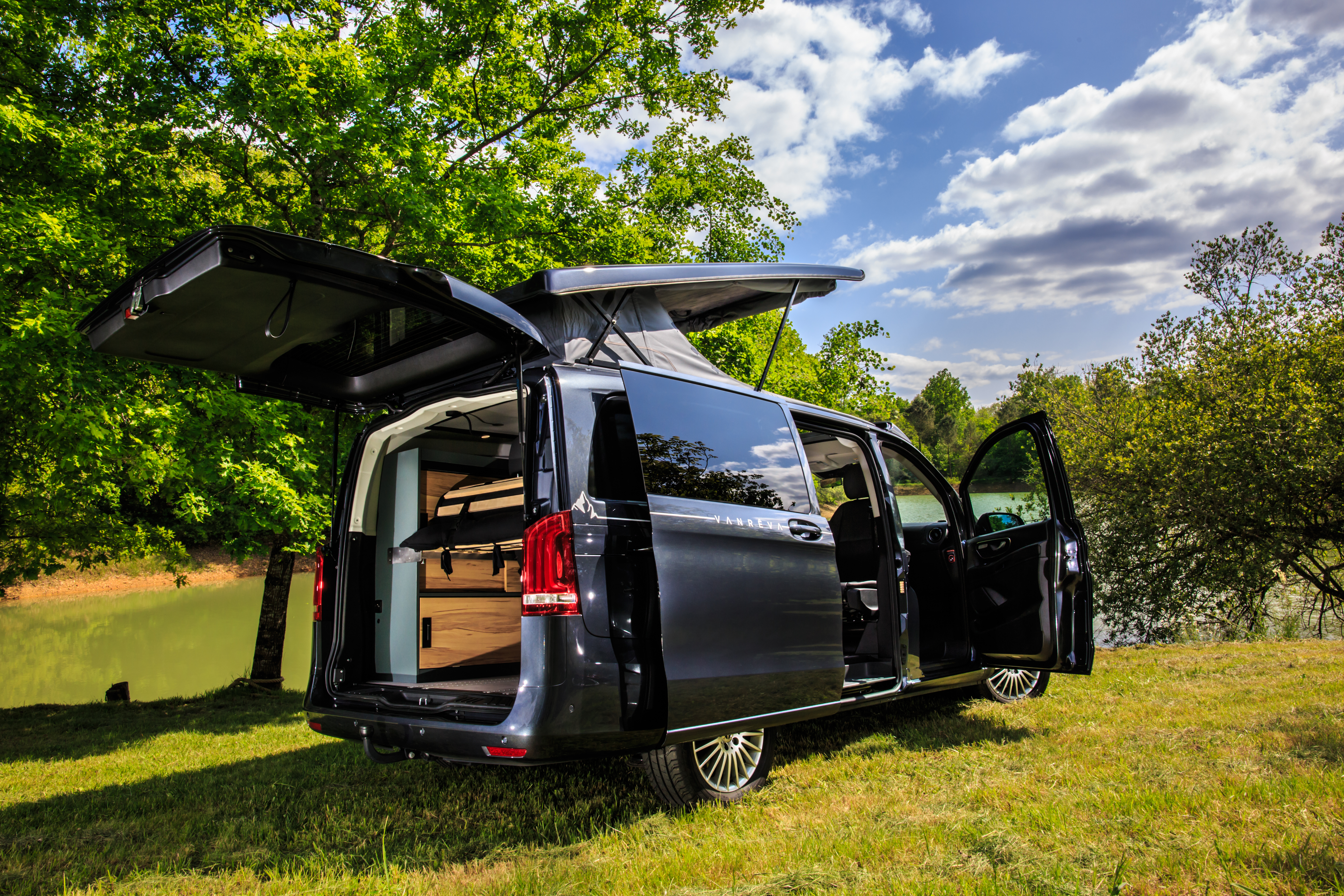 Notre AVANTURIER est un van pouvant être modulé de 2 à 5 places sur base Mercedes Vito long.